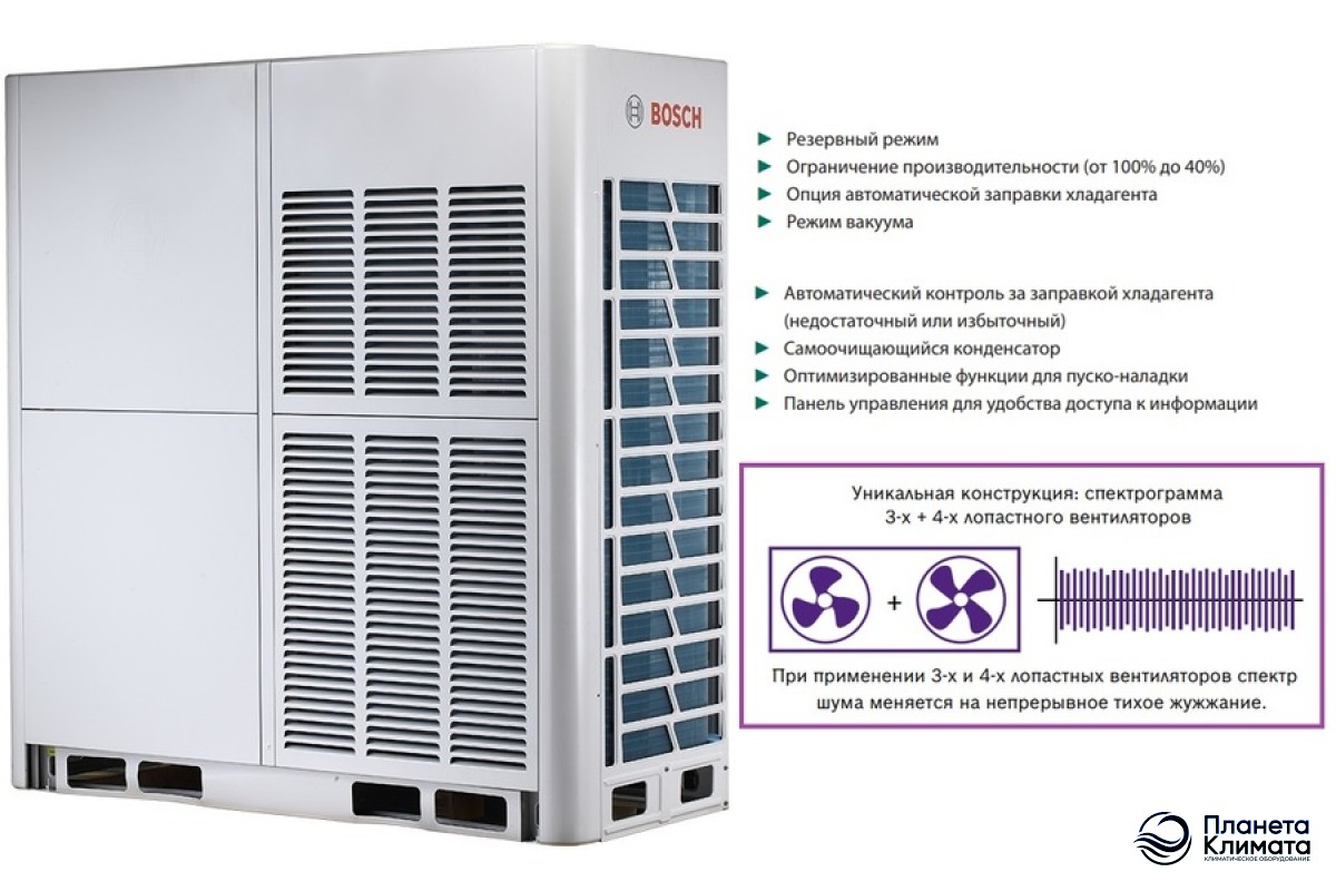 Наружные блоки VRF-систем серии AF5300A_С от компании Bosch представлены большим количеством моделей мощностью от 25,2 до 90,0 кВт, оснащенных спиральный компрессор с впрыском пара. Таким образом, можно достичь коэффициента использования производственных мощностей от 50% до 130%. Все агрегаты выполнены из качественных материалов и комплектующих, что гарантирует длительный срок эксплуатации.