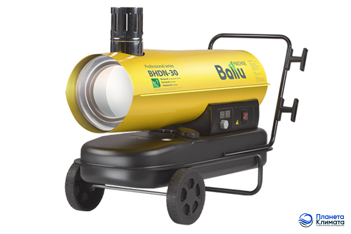 Тепловая пушка дизельная Ballu BHDN-30 непрямого нагрева – мощный обогреватель с объемом бака 50 литров, рассчитанный на эффективный обогрев помещения площадью до 300 м2.