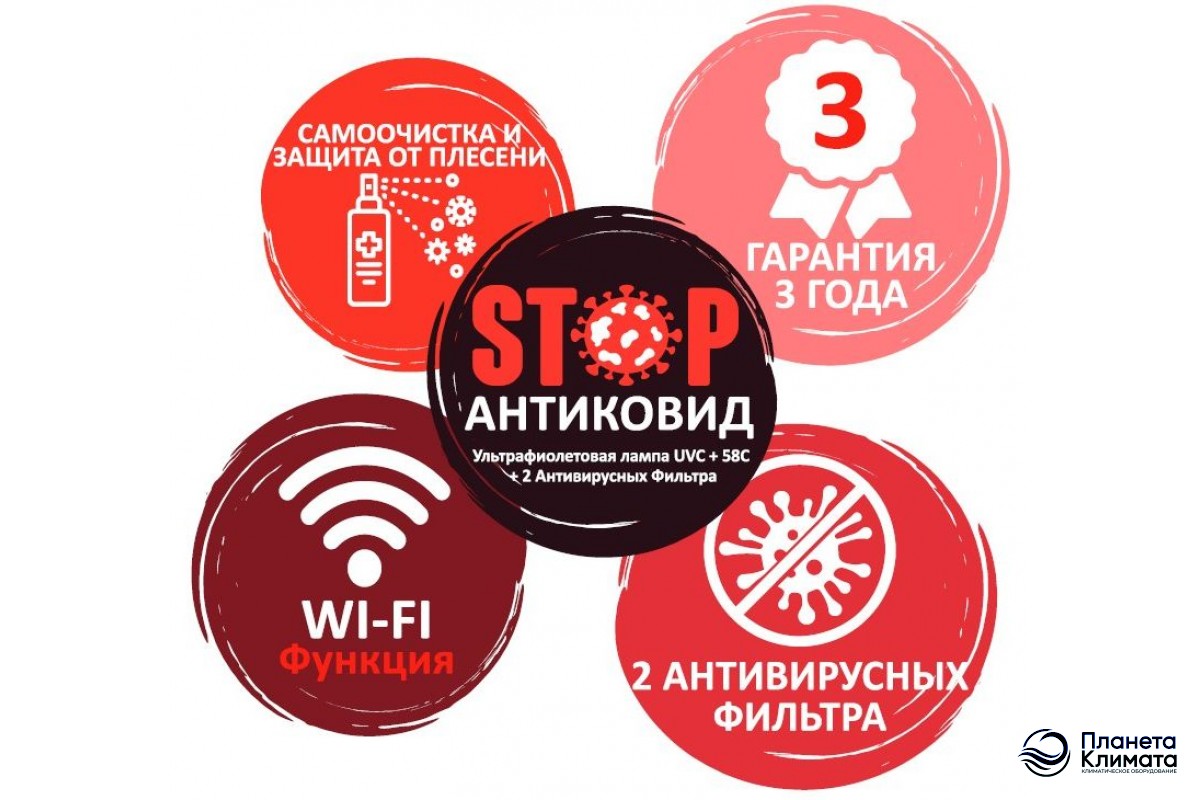 С помощью режима Self Clean теплообменник внутреннего блока нагревается до +58 C, удаляет остатки конденсата и полностью осушает поверхность испарителя. Именно благодаря этой технологии кондиционер всегда будет чистым, а воздух в вашем помещение абсолютно безопасным.