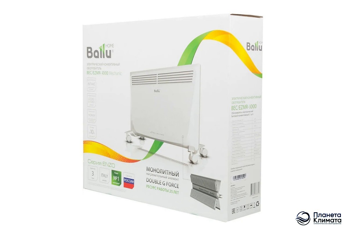 Конвектор Ballu Enzo BEC/EZMR-1000 белого цвета обеспечивает равномерное прогревание воздуха в пространстве, а также тихую и бесперебойную работу по установленным настройкам.