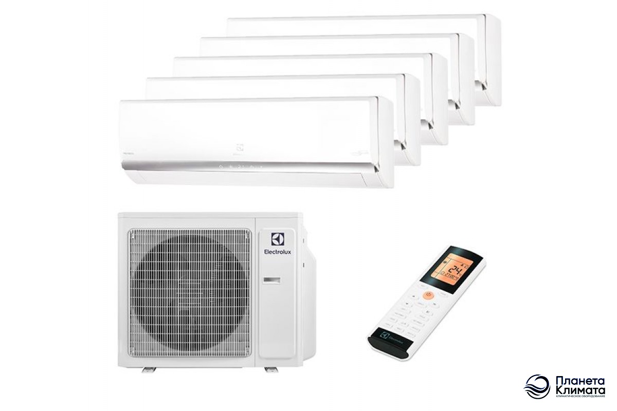 Мульти сплит система Electrolux EACS/I-07HM FMI/N8_ERP/in x 2 + EACS/I-09HM FMI/N8_ERP/in + EACS/I-12HM FMI/N8_ERP/in x 2 / EACO/I-42 FMI-5/N8_ERP – это решение для пяти комнат площадью 20 + 20 + 25 + 32 + 32 кв.м. Широкий выбор для монтажа за счет увеличенной длины трассы, низкий практически незаметный шум, сниженное энергопотребление – и это далеко не все преимущества данного комплекта. В такой системе используется только один наружный блок, что не мало важно, когда хочется сохранить привлекательный вид фасада здания. Температура для каждого помещения устанавливается индивидуально с помощью беспроводного пульта.